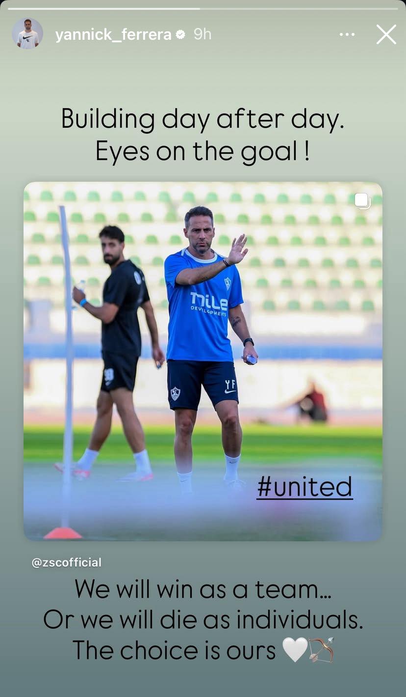 وجه البلجيكي يانيك فيريرا المدير الفني للزمالك رسالة جديد عبر حساباته على انستجرام.